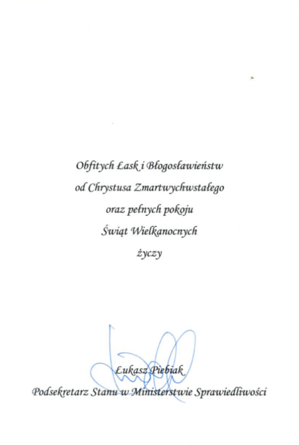 Życzenia z okazji Świąt Wielkiej Nocy z Ministerstwa Sprawiedliwości