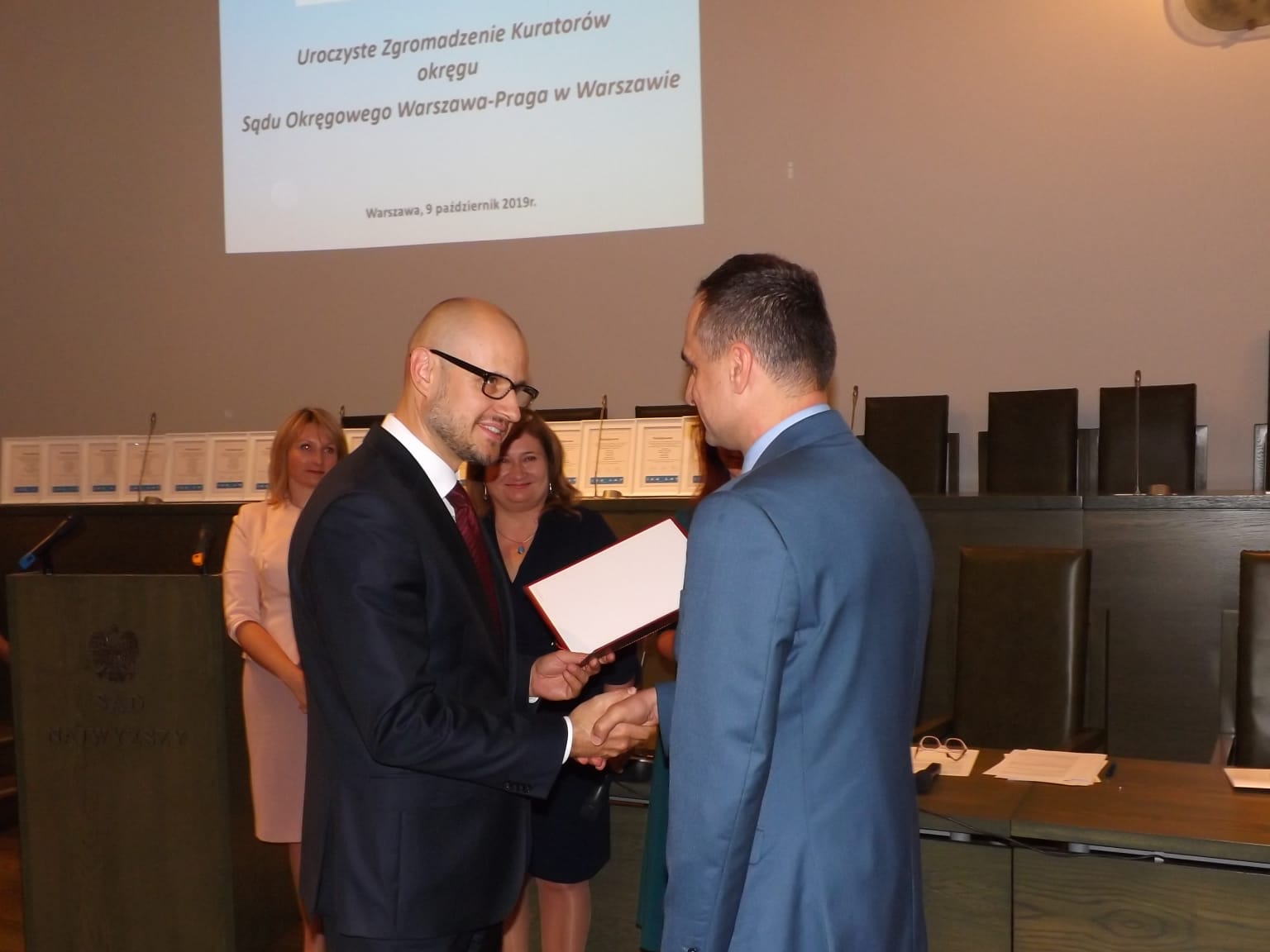 Paweł Iwaniuk Prezes Sądu Okręgowego, uhonorował zasłużonych kuratorów medalami pamiątkowymi Sądu Okręgowego Warszawa-Praga w Warszawie. Pani Anna Janus-Dębska Kurator Okręgowy wraz z Zastępcami Panią Katarzyną Bernacik i Panią Violettą Duda, wręczyła Kuratorom zawodowym podziękowania za pełną poświęcenia pracę na rzecz osób potrzebujących wsparcia i pomocy oraz za trud wkładany w pełnienie codziennych obowiązków.