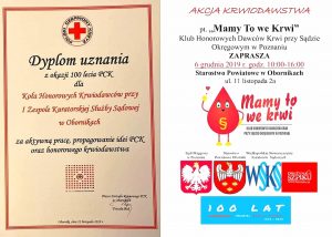 z okazji 100 – lecia PCK, Polski Czerwony Krzyż uhonorował za aktywną pracę, propagowanie idei PCK oraz honorowego krwiodawstwa Koło Honorowych Krwiodawców przy I Zespole Kuratorskiej Służby Sądowej w Obornikach.