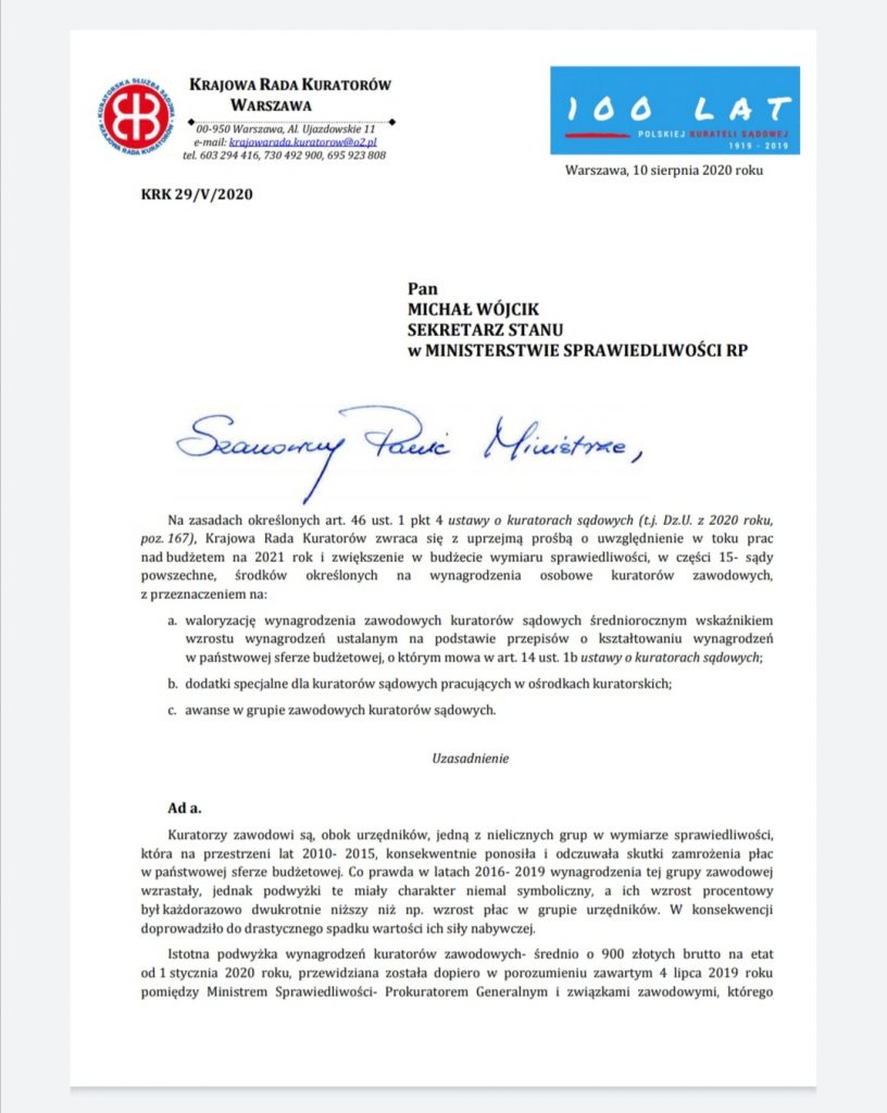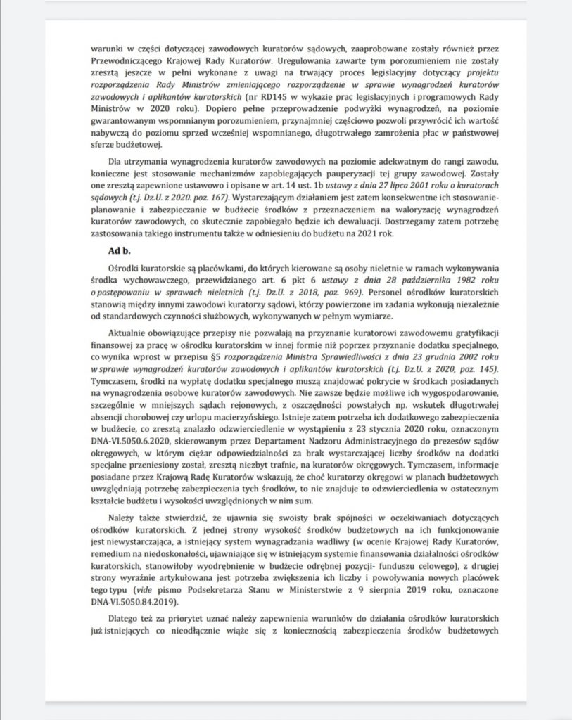 Opinia KRK do projektu rozporządzenia Rady Ministrów zmieniającego rozporządzenie w sprawie wynagrodzeń kuratorów zawodowych i aplikantów kuratorskich