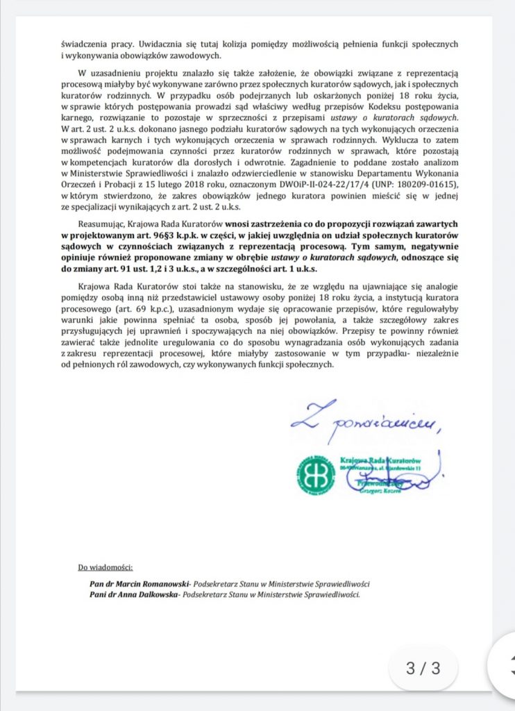 – to artykuł opublikowany na Prawo.pl w dniu 13 października 2020, którego autorka Pani Patrycja Rojek – Socha, przedstawia stanowisko Ogólnopolskiego Związku Zawodowego Kuratorów Sądowych