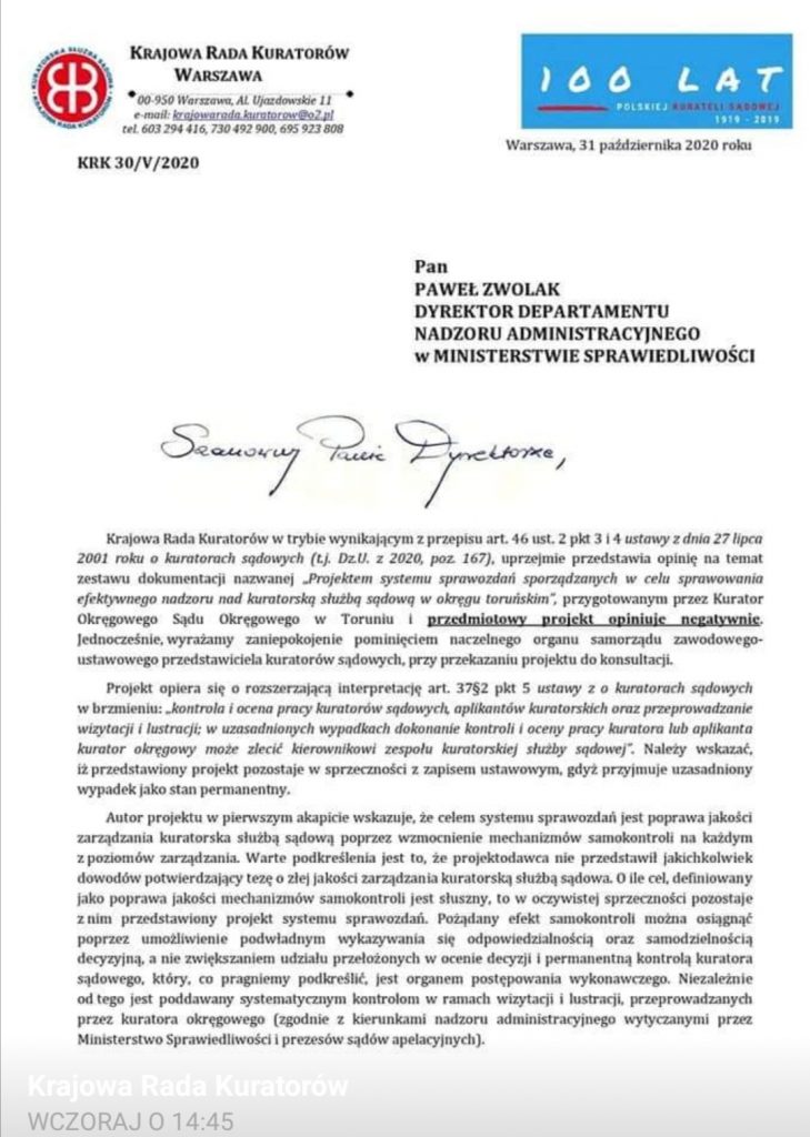 W Dzienniku Urzędowym Ministra Sprawiedliwości ukazało się pod pozycją 243 Zarządzenie Ministra Sprawiedliwości z dnia 25 listopada 2020 r. zmieniające zarządzenie w sprawie ustalenia regulaminu organizacyjnego Ministerstwa Sprawiedliwości , które odnosi się do kuratorskiej służby sądowej. Z w/w zarządzenia wynika, że :