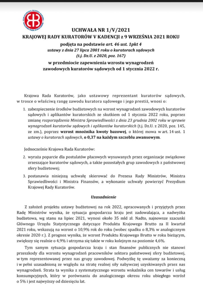 Pełna treść uchwały nr 1/V/2021 Krajowej Rady Kuratorów: