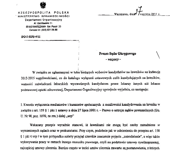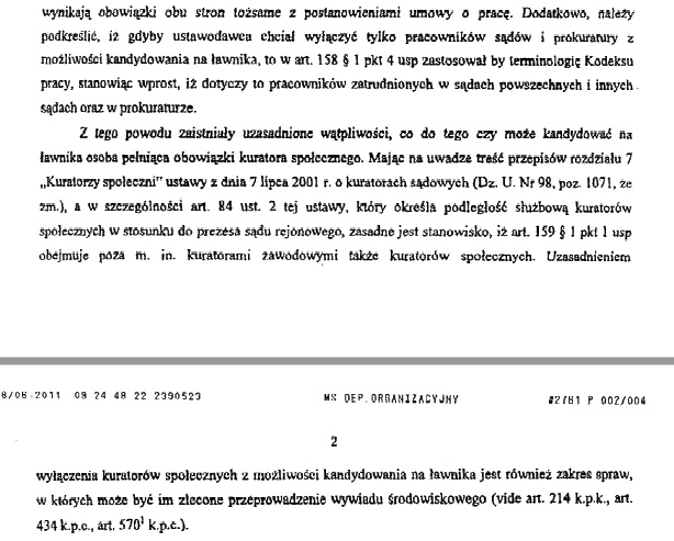 W załączeniu opinia Ministerstwa Sprawiedliwości o której mówiłem a z której wynika, że nie można łączyć funkcji ławnika i kuratora społecznego.